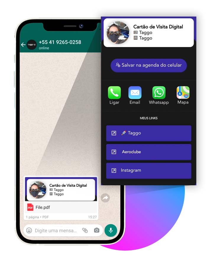 ✅ Taggo é muito mais que apenas um cartão de visitas: é uma central completa de atendimento, com todos seus dados de contato, Recebimento de Pagamentos e Gerador de PDF interativo.