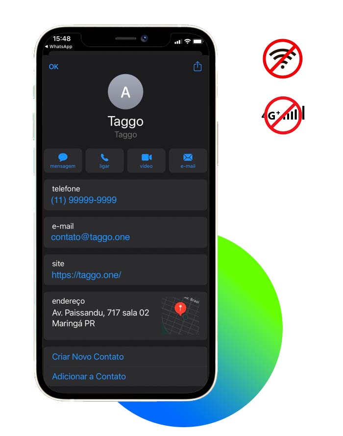 Poupe o tempo do seu cliente. Com o Taggo você facilita que ele anote seu contato corretamente, garantindo que nada será anotado errado.