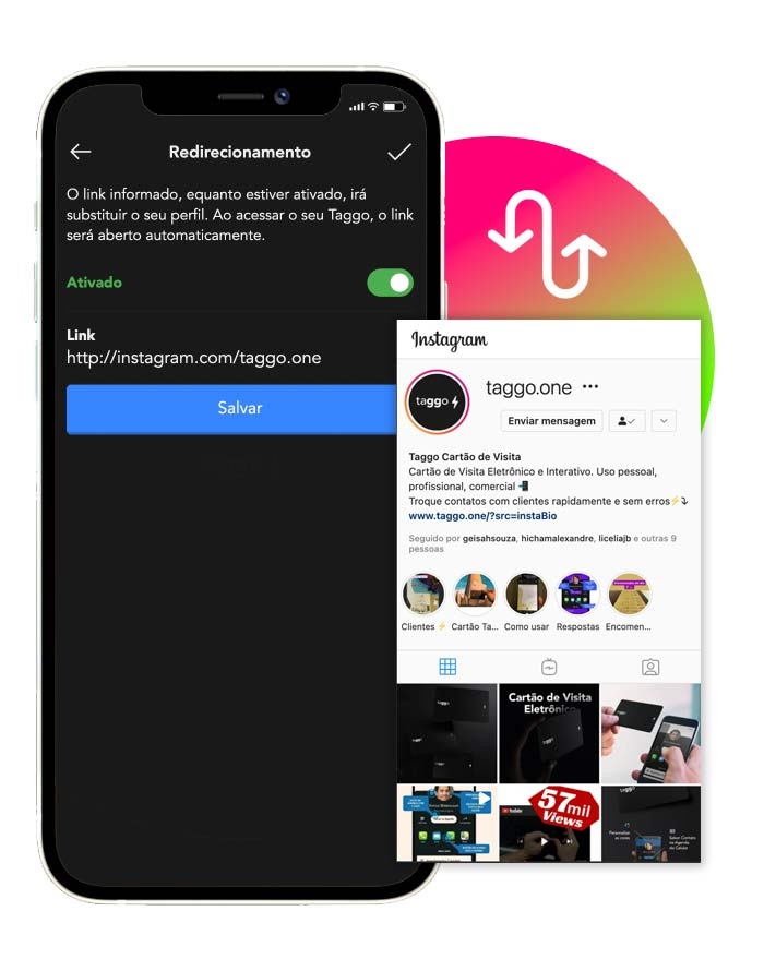 Ao aproximar ou usar o QR Code seu Taggo redirecionará seu cliente para onde desejar, como por exemplo, abrir automaticamente seu Instagram, Whatsapp, etc.