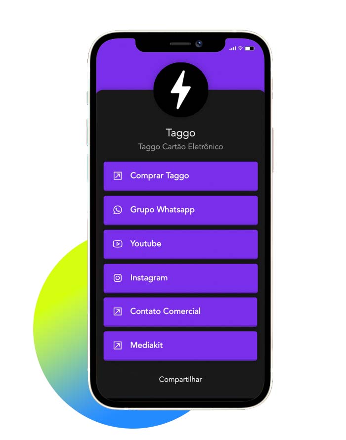 Taggo é um Cartão de Visita Eletrônico, que não utiliza baterias. Funciona assim: Aproxime o Taggo do celular ou leia o QRCode para compartilhar seus dados diretamente no celular do seu cliente! Seu perfil é 100% personalizável, edite seus dados quantas vezes quiser através do seu painel on-line.